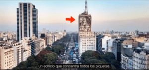 El posteo está acompañado de un video con escenas de distintas protestas sociales frente al edificio situado sobre la avenida 9 de Julio y finaliza con una imagen en la que se observa una simulación de la demolición de la estructura de casi 100 metros de altura.