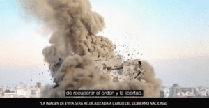 El posteo contiene también la indicación que las dos imágenes del rostro de Eva Perón realizadas en acero, que están sobre los lados norte y sur del edificio desde 2011, «serán relocalizadas por el Gobierno nacional».